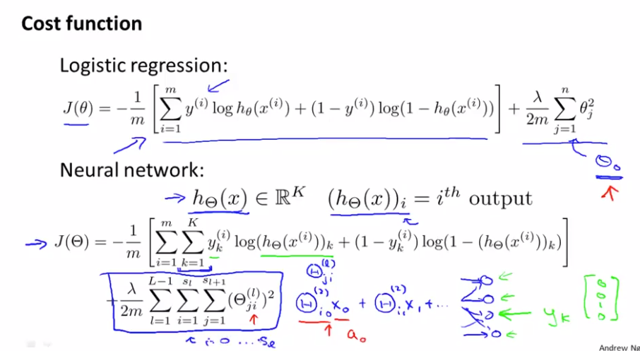 - the double sum simply adds up the logistic regression costs calculated for each cell in the output layer