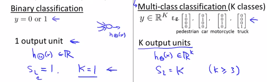 For Binary Classification Problems, where y = 0 or 1, we would have 1 output unit.